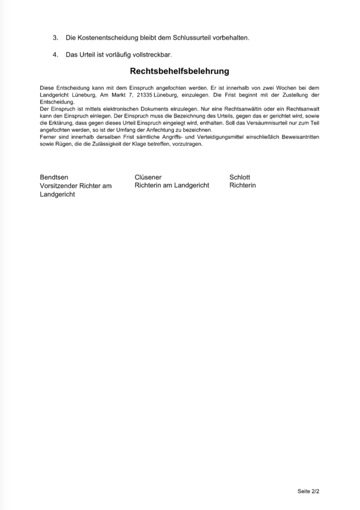 Fachanwaltskanzlei Seehofer erwirkt gegen die heutige Avia ein Teil- Versäumnisurteil am 07.04.2026